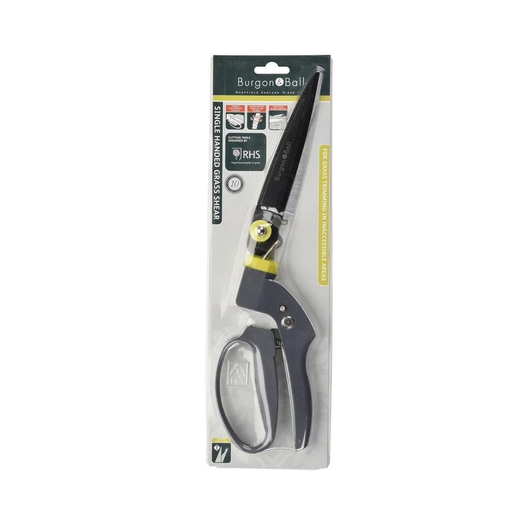 Cette cisaille à gazon à main Burgon & Ball est un outil de coupe particulièrement précis grâce à la rotation des lames qui permet le réglage de l’angle de coupe jusqu’à 180°. Vous pourrez couper l’herbe à la verticale, à l’horizontale et même en diagonale sans changer de position. Plus d’arreur de look possible, vous aurez un vrai gazon anglais! Cette cisaille qui s’ouvre et se bloque d’une seule main est très pratique pour couper l’herbe sans effort dans les endroits exigus difficilement accessibles à la tondeuse. C’est aussi un outil robuste et durable, fabriqué dans des matériaux de grande qualité avec ses lames en acier carbone trempé ultra tranchantes. Des poignées gainées et antidérapantes assurent également une bonne prise en main et un confort d’utilisation optimal. Ce produit est garanti 10 ans par le fabriquant.