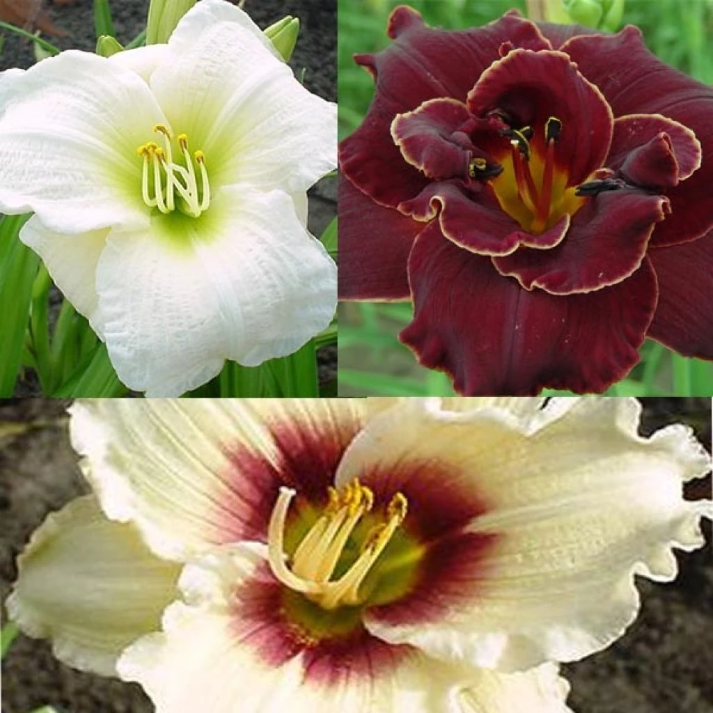 Jolie collection de 3 Hémérocalles aux couleurs complémentaires, ces plantes vivaces sont semi-persistantes, leur feuillage est en lanière de couleur vert vif à vert foncé. Elles sont très rustiques et peuvent atteindre jusqu’à 75 cm.