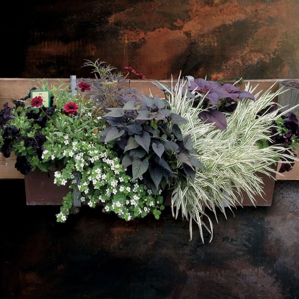 Collection de 6 annuelles en 5 variétés pour une jardinière bronze, la collection se compose d’une variété de :