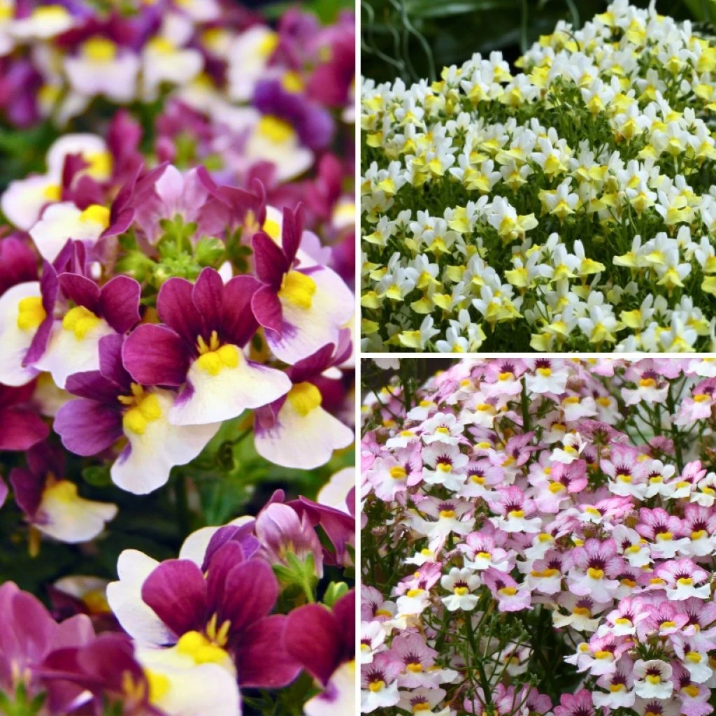 Cette Collection Némésias est une sélection de trois excellentes variétés récentes de « miroir des elfes », très florifères, qui conservent un aspect bien net durant toute la saison. Ces plantes annuelles produisent une multitude de petites fleurs bicolores à tricolores, idéales pour animer les balcons et terrasses du printemps jusqu’aux premiers froids. Elles créent un effet prodigieux de nuage dans les suspensions et les jardinières et exhalent un doux parfum de miel et de vanille qui plaît aux insectes butineurs. Faciles à cultiver en exposition ensoleillée, dans un bon terreau horticole riche et drainé.