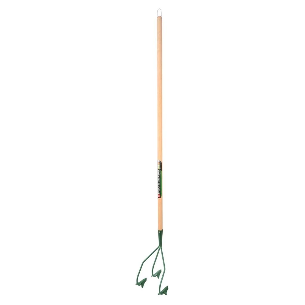 Le cultivateur 3 dents est conçu pour l’ameublissement régulier du sol en surface et le désherbage des petites à moyennes surfaces et des espaces plus étroits comme entre les rangs de potager ou entre les plantations établies dans un massif. Il s’utilise en effectuant des gestes d’enfoncement et de griffure. Il est parfait pour ameublir le sol en cassant la croûte sèche et dure, en terres pas trop lourdes. Cela permet une meilleure circulation de l’eau et de l’air dans le sol autour des racines, indispensable pour pour le bon développement des plantes. Comme la griffe, il sert aussi à arracher et enlever les mauvaises herbes. Ce modèle est muni d’une tête large en acier robuste et des dents se terminant en flèches qui permettent une meilleure efficacité de travail. En effet, elles creusent autour des plantes herbacées indésirables et arrachent leur touffe facilement. La forme spéciale de ses dents s’emploient facilement pour creuser des trous ou des sillons pour la plantation de bulbes, graines ou des petites mottes de vivace ou d’arbustes. Il comporte un manche assez long de 130 cm en bois de hêtre qui permet de travailler sans trop fatiguer le dos et solliciter d’efforts physiques de la part du jardinier.