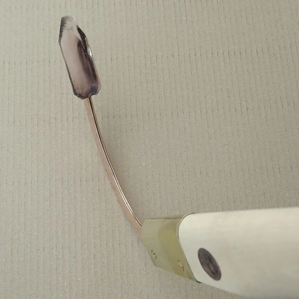 Pour conserver le bel aspect de votre outil en cuivre, nous vous conseillons de le nettoyer avec une brosse dure après chaque usage, de le stocker à l’abri de l’humidité et une fois par an de passer le manche au papier de verre fin puis de l’huiler avec un mélange d’huile de lin et de térébenthine qui permet une application plus facile. Vous pouvez diluer moitié moitié et pour un séchage plus rapide du manche utiliser l’huile de lin cuite.