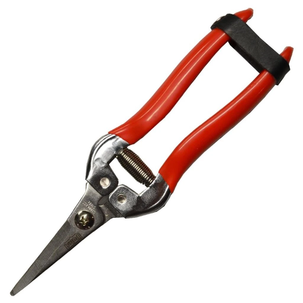 Le sécateur est l’outil incontournable que doit posséder tout jardinier, qu’il ait à entretenir un petit balcon, une terrasse, un petit jardin de ville, un grand jardin à la campagne ou un verger. Le sécateur à fruits est composé de deux lames droites mobiles qui viennent se glisser l’une contre l’autre quand on resserre les poignées de l’outil. Il fonctionne comme une paire de ciseaux. ce modèle mesure 18.5cm de long. Il permet de tailler des tiges et rameaux verts ou vivants mesurant jusqu’à 1cm de diamètre.