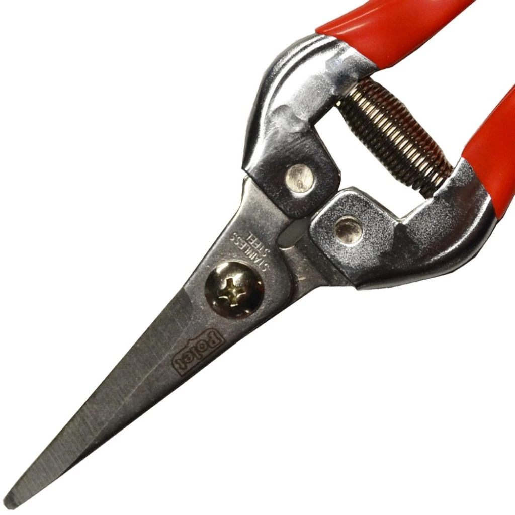 Cette épinette traditionnelle Polet, également appelée sécateur à fruits ou encore ciseaux à vendange, est un outil de coupe robuste, mais conçu pour un travail de précision. Sa tête de coupe pointue et très fine permet au jardinier d’accéder facilement et précisément aux tiges minces noyées dans la végétation, et ses deux lames droites, pointues et légèrement dentées, coupent de façon très nette les tiges vertes des fleurs et les fins pétioles qui portent les fruits ou les légumes. Ce modèle, qui n’oublie pas le confort d’utilisation, possède des poignées profilées et gainées mais non glissantes permettant une bonne prise en main, ainsi qu’une butée-amortisseur pour protéger la main qui travaille. A la fois robuste et maniable, il sera parfait pour toutes la cueillette des fruits, des fleurs et des légumes, pour vendanger, mais aussi pour tous les travaux de taille qui exigent de la minutie