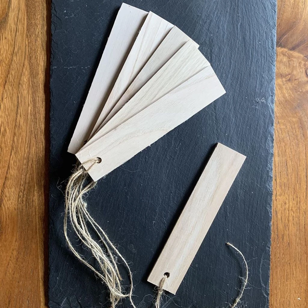 Les sachets de graines, tout comme les bandeaux et étiquettes imprimés qui sont fournis lors de l’achat des végétaux, s’abîment souvent très vite sous l’action conjuguée du soleil et de la pluie, le nom des plantes y devenant rapidement illisible. En revanche, ces étiquettes, fabriquées en bois, résistent mieux aux outrages du temps. Chacune mesure 15cm de long pour 3 cm de large et se présente sous la forme d’un rectangle long et étroit, perforé à une extrémité, permettant le passage d’un lien d’attache. Le nom de la plante ou toute information pourra y être inscrit à l’aide d’un feutre indélébile, avant la mise en place.