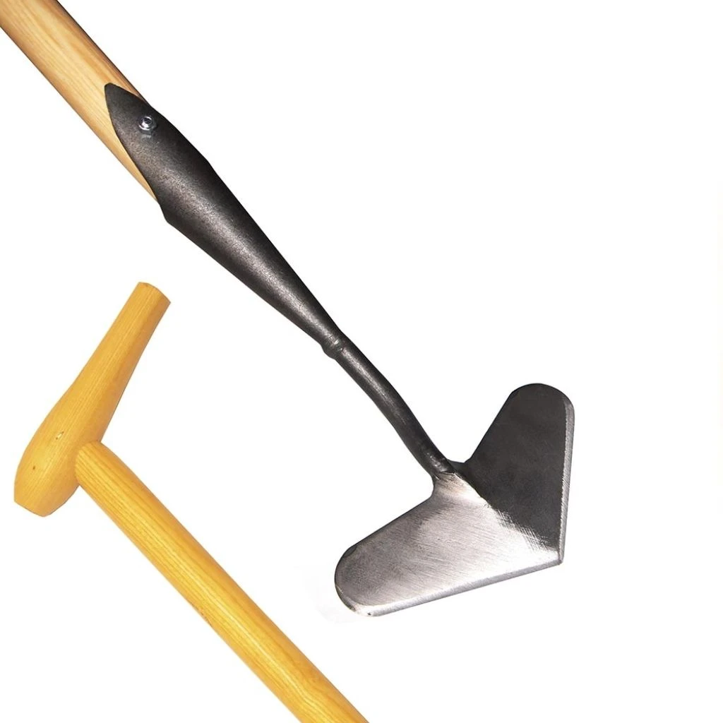 Cette grande binette traditionnelle De Pypere est équipée d’un long et solide manche en frêne terminé par un T, et possède une tête en forme de coeur aux bords bien affutés, permettant une utilisation à 360°. C’est un outil de jardin idéal pour enlever les mauvaises herbes qui poussent entre les plantes, y compris dans les endroits étroits et difficiles d’accès, tout en facilitant l’aération et le décompactage superficiel du sol. Sa lame est forgée à la main en acier, avec une finition en acier au bore. Durable et résistant, c’est un outil de bonne facture qui accompagnera le jardinier durant de nombreuses années.