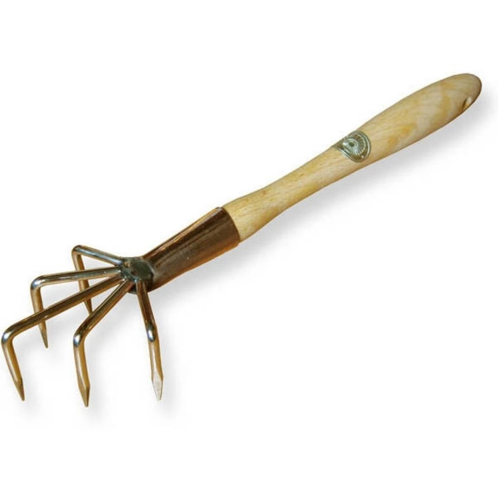 Cette petite griffe de jardin traditionnelle PKS Bronze de la marque homonyme du célèbre naturaliste et écologiste autrichien est idéale pour désherber, aérer et décompacter le sol entre les plantes. Sa tête en alliage de cuivre est formée de 5 dents courbées disposées en quiconce.