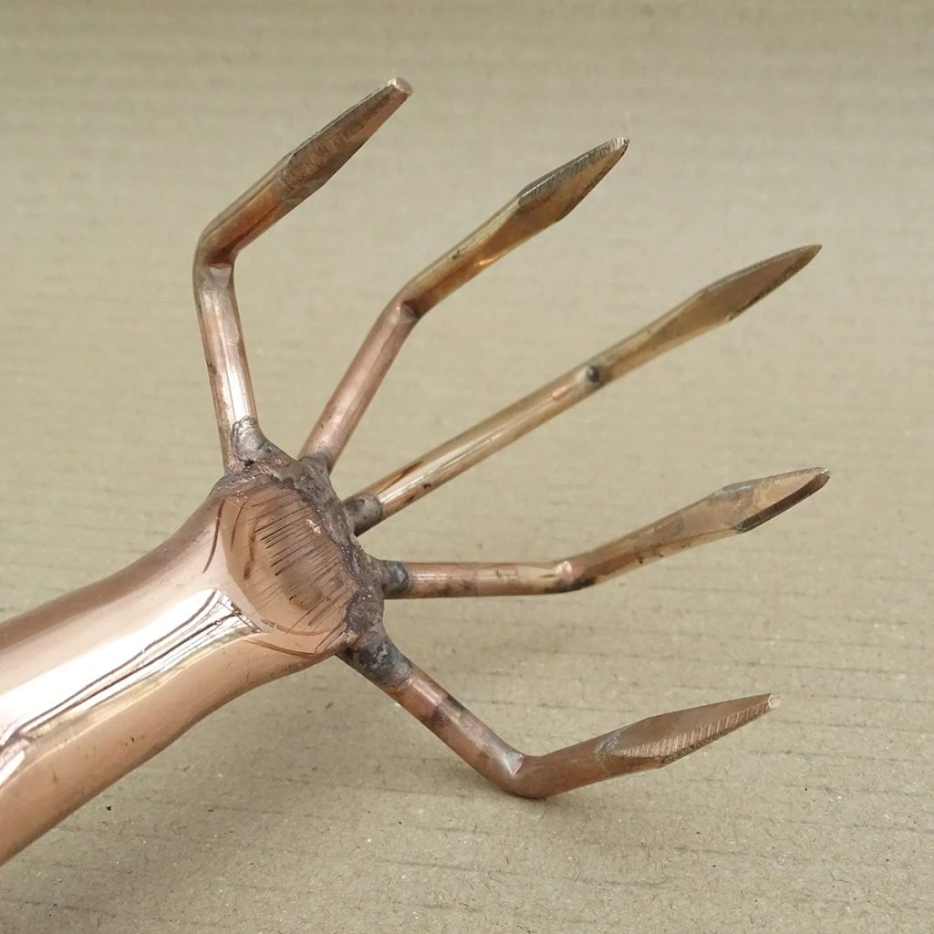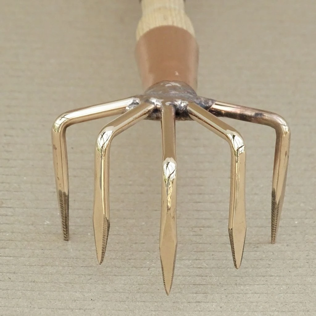 La griffe de jardin en cuivre à 5 dents est particulièrement adaptée aux terres lourdes. Elle s’utilise pour affiner le sol, surtout au printemps, après avoir préparé et retourné la terre à l’aide d’une bêche, d’une pioche ou d’une fourche-bêche. Elle peut également être utilisée pour désherber : grattez la terre puis enlevez les herbes indésirables. C’est un allié utile également pour nettoyer les bordures près des cultures, sans risque de blesser leurs racines.