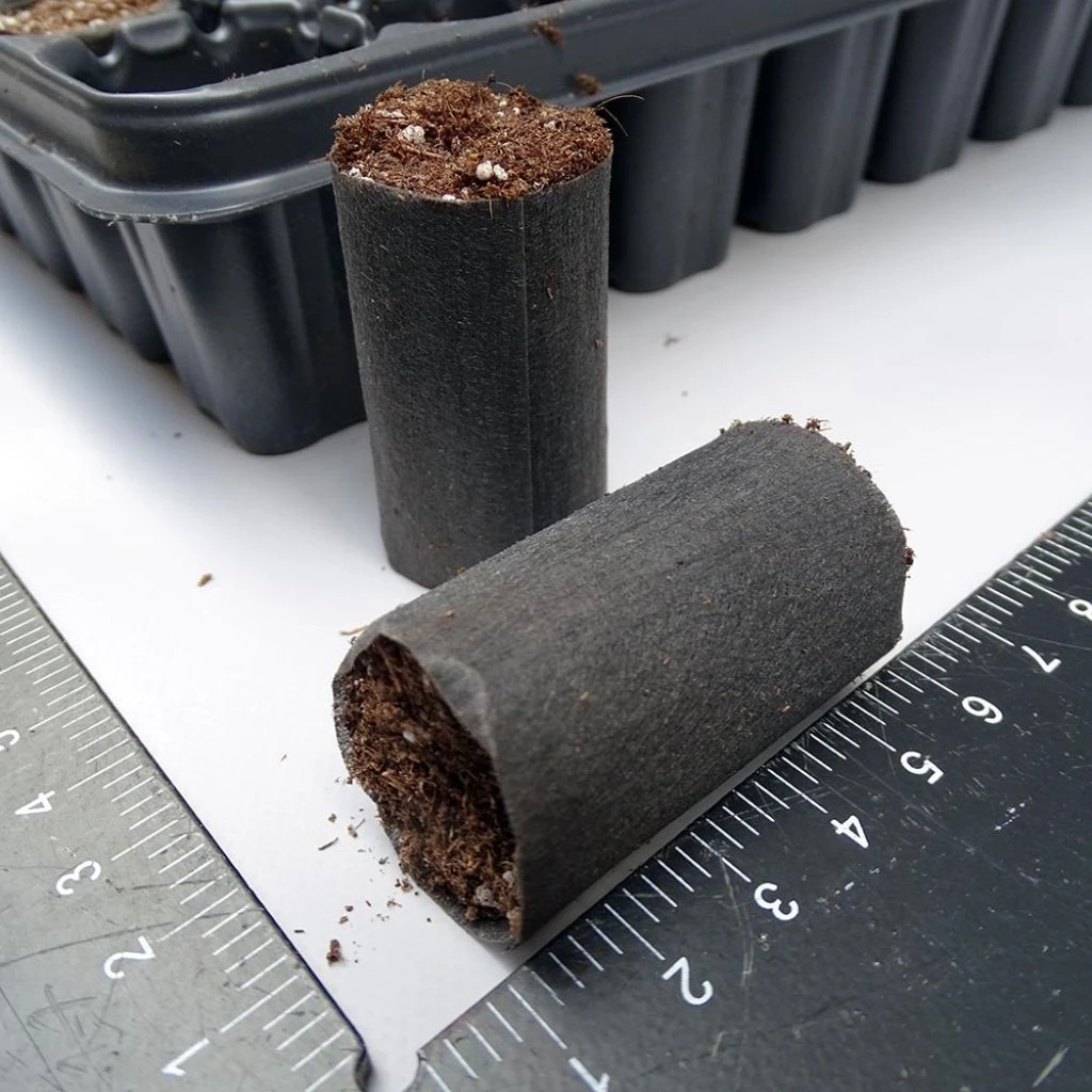 Ces mottes Fertiss 3 x 5 cm de Fertil sont plébiscitées par les professionnels dans le cadre des semis, du bouturage et même de la culture in vitro. Ce sont des petites mottes de culture constituées de tourbe et de perlite et cernées d’un voile non-tissé. Ce substrat favorise le développement des premières racines, très fragiles, et le non-tissé leur permet de se ramifier et de traverser son maillage très fin. C’est à ce moment là que la toute jeune plante est prête à être repiquée dans un pot plus grand, pour la fortifier avant une éventuelle mise en terre. Contrairement aux pastilles déshydratées, Fertiss est un produit frais, qui ne nécessite qu’un simple arrosage avant l’emploi. Et il n’est pas nécessaire d’enlever les mottes au moment du rempotage ou de la plantation. Vendues en plateau de 104 petites mottes mesurant chacune 5 cm de hauteur pour 3 cm de diamètre à la base.