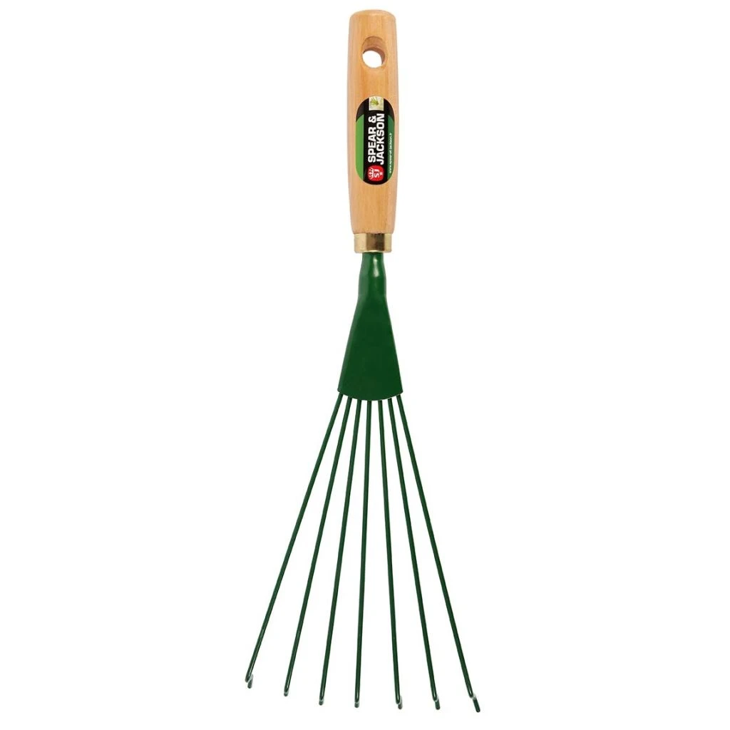 Ce petit balai à fleurs à fil rond manche en bois Spear & Jackson avec sa tête étroite de 15 cm et son petit manche en bois est l’outil parfait pour accéder et nettoyer les espaces restreints comme les petites plates-bandes et massifs et vos plantes en pot, en jardinière ou en bac! Sa tête est formée de 7 dents crochues, disposées en éventail pour faciliter le ramassage des feuilles mortes tombées au sol, des petits déchets végétaux issus de la taille et des tontes de gazon. Les dents de ce modèle sont spécialement arrondies pour permettre la scarification de vos pelouses et le sol entre vos plantatations, enlevant ainsi la mousse étouffante et aérant le sol en surface sans arracher le gazon et les plantes autour. C’est un petit outil à main très robuste avec sa tête et son emmanchure en douille en acier et son manche en bois de hêtre. Pesant seulement 160 g, il est particulièrement agréable à manier. Garanti 5 ans.