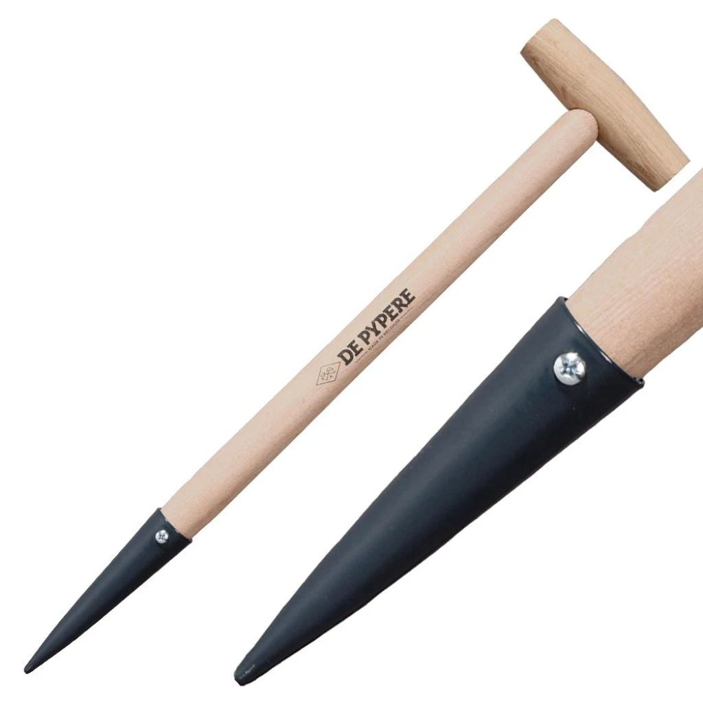 Ce plantoir De Pypere est équipé d’un long manche en bois de 80cm, terminé en large béquille. C’est un outil de jardin robuste et ergonomique qui permet de faire les trous de plantation ou des sillons pour les semis sans trop se baisser, en prenant appui sur le manche, pour épargner le dos. La tête en métal, conique et pointue, pourra être remplacée lorsqu’elle est hors d’usage.