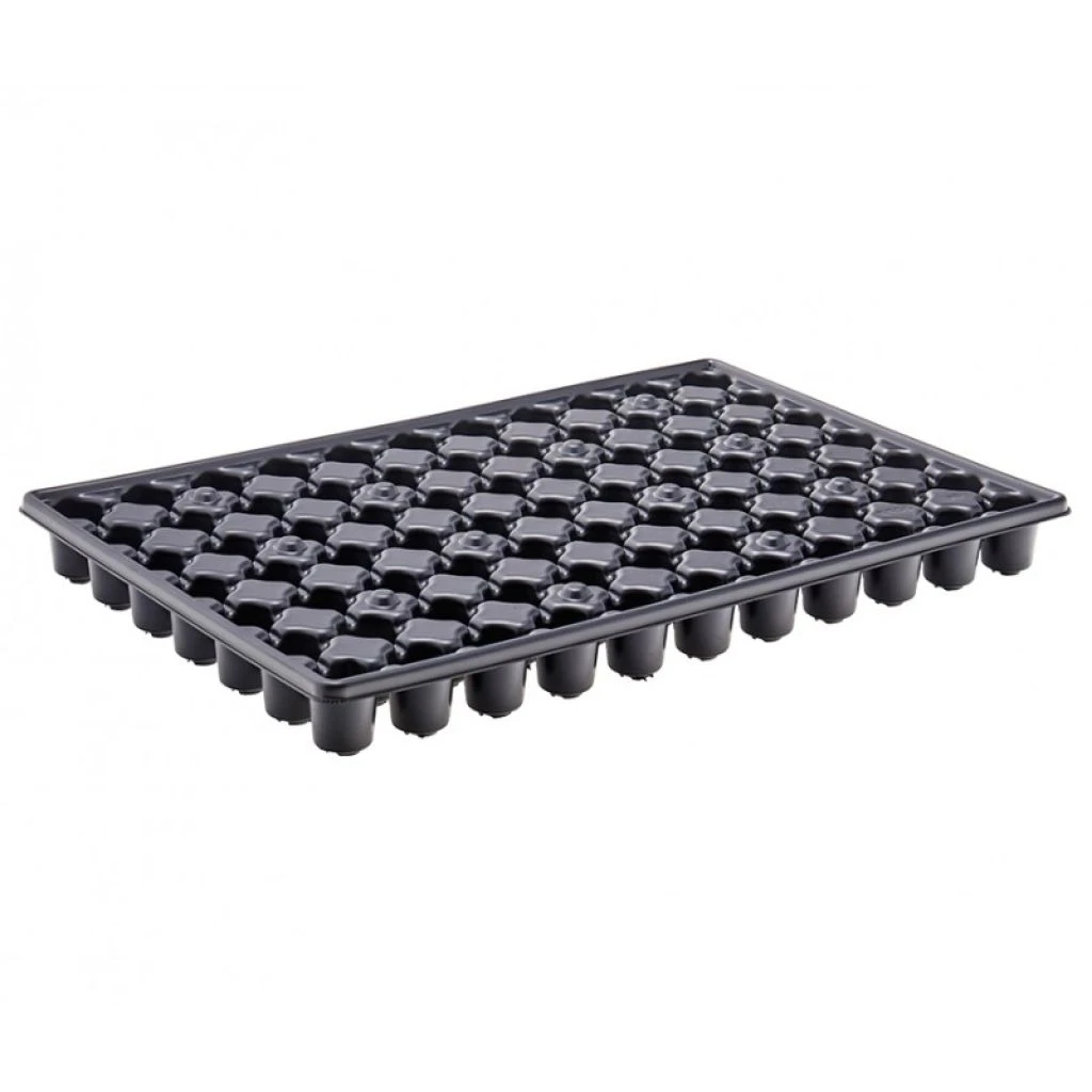 La plaque de culture mesure 50 cm de long pour 33 cm de large et 4.7 cm de haut. Elle est fabriquée en matière plastique de couleur noire, mate, suffisamment rigide pour pouvoir être facilement manipulée. Elle présente 77 alvéoles de culture à base ronde, munies d’un trou pour le drainage, mesurant 4.7 cm de hauteur pour 3.4 cm de diamètre en partie haute, 2.80 cm de diamètre à la base, d’un seul tenant. Ce qui facilite le remplissage des alvéoles avec du terreau, la mise en place, les semis, les manipulations, les soins, l’arrosage et le repiquage. L’arrosage pourra se faire à l’aide d’un arrosoir muni d’une pomme fine, ou par capillarité, en plaçant par exemple un morceau de moquette que vous pourrez humidifier, sous la plaque de semis. Le plant sera ainsi protégé contre un arrosage trop agressif et bénéficiera en revanche d’un apport régulier en eau avec un substrat qui sera toujours humide.