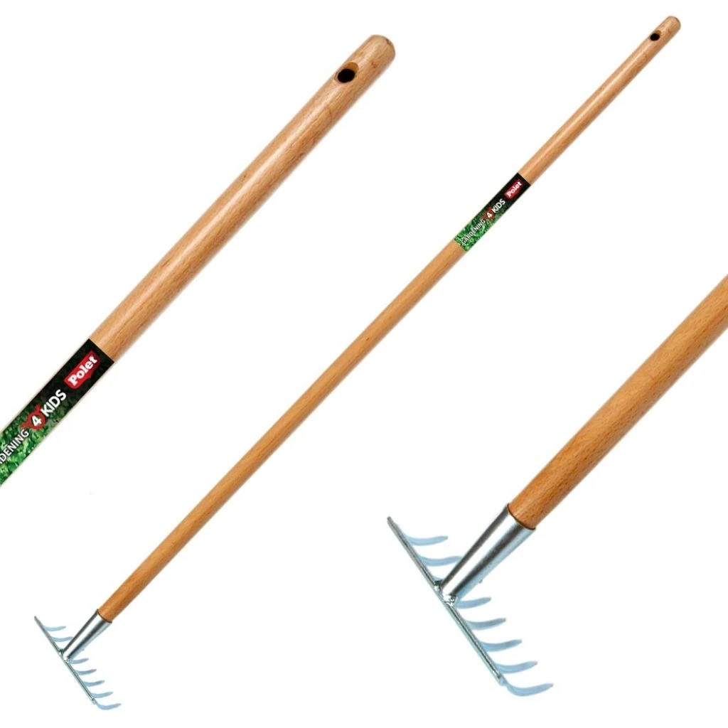 Le râteau 8 dents pour enfant Polet est un outil manuel au poids et à longueur spécialement adapté au maniement par les plus jeunes jardiniers! Sa tête peu large permet une utilisation plus précise dans les espaces étroits comme entre les touffes de vivaces, en carré potager ou le long de petites allées sinueuses du jardin. Fabriqué à partir de matériaux durables et résistants, ce râteau permettra aux enfants d’assister aux étapes les plus indispensables du jardin. C’est en effet, un outil qui sert à la fois à la préparation du sol, l’entretien des parterres, pelouses et chemins mais aussi au recouvrement des semis.