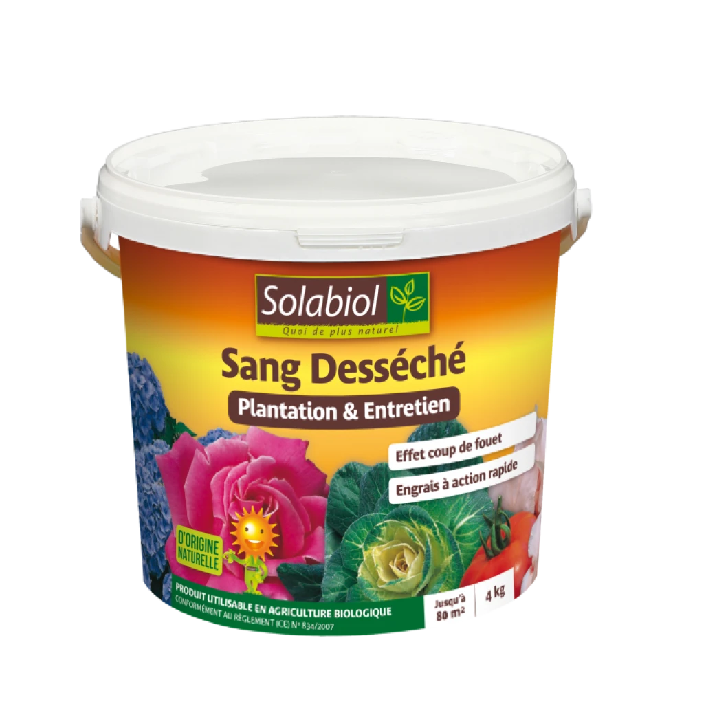 Le sang desséché est tout indiqué dans les terres pauvres ou carencées en fer. Il est souvent associé à la corne broyée, très complémentaire, dont l’action est plus prolongée dans le temps.